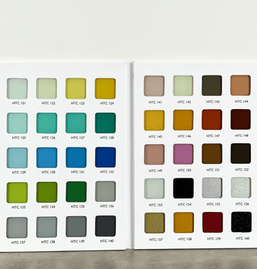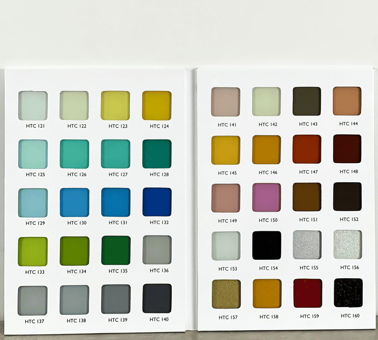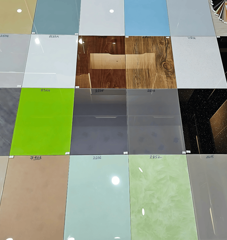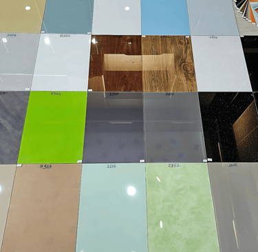 Bảng màu kính sơn đa dạng, với các giải pháp sơn trên bề mặt kính trong, kính đúc hoặc kính nhám. Mặt sau được dán lớp decal bảo vệ tránh trầy xước
