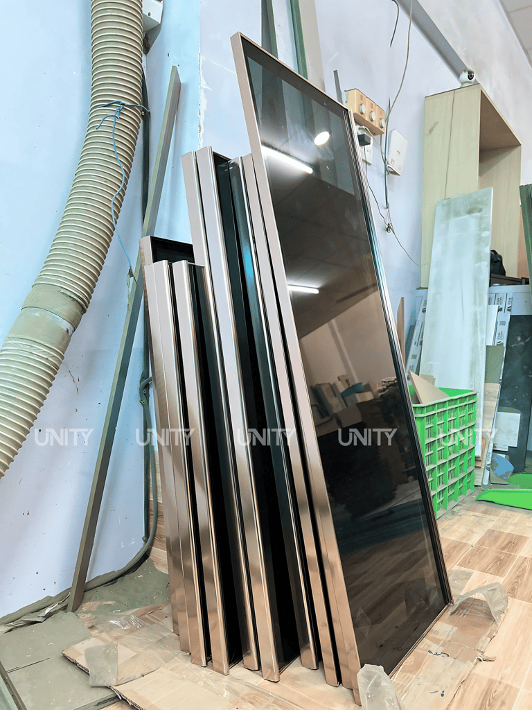 NHÔM HỒNG BÓNG - KÍNH XANH ĐEN